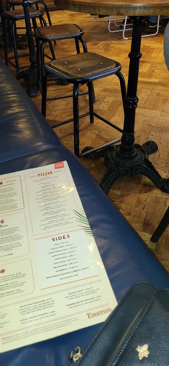 Einstein's menu is a true celebration of flavors, showcasing signature dishes like the Seabass Schnitzel, Hunters Chicken, and Steak & Ale Pie. For lighter options, try the mouthwatering Steak Patty or Pesto Penne. The offerings include enticing specials like Fische & Chips and the hearty Spats 'N' Cheese, catering to all taste preferences.